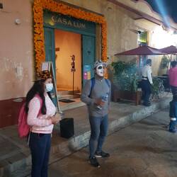 Der Dia de los Muertos rückt näher und fast alle Leute auf den Straße sind verkleidet und an jeder Ecke gibt es was anderes sehen. Die Stadt lebt!Baca lagi