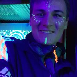 Zuerst haben wirs nicht gefunden aber dann auf einmal Mitten im Nirgendwo: ein Rave im Wald. Alles war mit Schwatzlicht ausgeleuchtet und dann gabs noch schnell ne reflektierende Bemalung im Gesicht und dann ging das halt bis 10 Uhr in der Früh, aber wir sind schon um 4:30 Uhr abgehauen^^