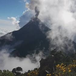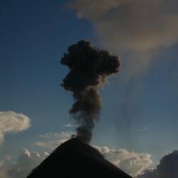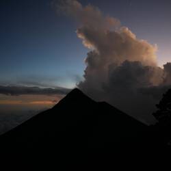 Dann auf einmal WUMM! Und vor uns schoss eine riesige Rauchwolke in den Himmel. Ein tiefes Grollen folgte im Abstand von paar Sekunden. Und das war er der Vulcano Fuego! Bis es dunkel wurde war das auch die stärkste Erruption die wir gesehen hatten.
