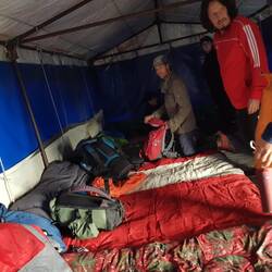 Wir wurden auf 2400m hochgefahren und dann steht ein fünf Stunden Marsch an. Davor wurden wir noch ausgestattet mit Jacken, Handschuhe, Mützen und unserer Brotzeit. Und es gab einen Wanderstock, der sich tatsächlich sehr bewehrt hat!