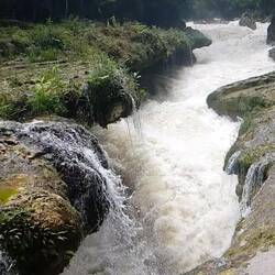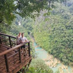 Es gibt viele Stellen wo man die verschieden Stufen runterrutschen oder springen kann. In Kombination mit dem Ausblick ins Tal und den hohen Felswänden links und rechts wirklich traumhaft. Muss man gesehen haben wenn man in Guatemala ist!