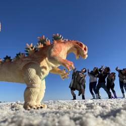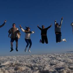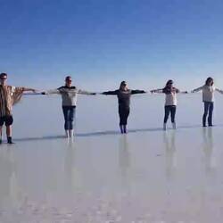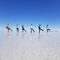 Danach sind wir weiter gefahren - mitten in die Salzwüste, wo nichts und niemand dann mehr da war. Nur wir. Hier haben wir die Geimeinschaftsbilder und Videos gemacht. Also bestimmt 2-3 Stunden Fotoshootings. Es sind halt unglaublich witzige Perspektiven mit dieser Landschaft möglich, weil das menschliche Auge keine Anhaltspunkte für Größen in der Wüste findet.