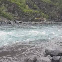 Wir sind dann die Straße weiter hoch marschiert und wollten zum 6 km entfernten See. Der eigentliche Plan war per Anhalter zu fahren. Es hat aber keiner gehalten, was aber nicht schlimm war, weil wir immer wieder zum Fluss runter sind, der mit türkisblauem Wasser einen zum Staunen bringt! An einer Stelle haben wir dann Brotzeit gemacht und hatten 5 min unsere Ruhe bevor es angefangen hat zu schütten.. mal wieder^^