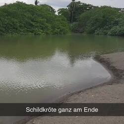 Hinter dem Strand war eine Lagune. Ein Schild warnt mit der Schrift: Danger: Crocodils! Do not swim! Und ja ich hatte Respekt davor, bis ich auf einmal ein Schildkrötenkopf aus dem Wasser hab ragen sehen! Leider habe ich sie nicht in voller Größe gesehen, aber der Kopf war riesig!