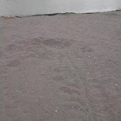 Zuerst ging alles ganz gut und ich habe wunderschöne Strände entdeckt. Keine Menschenseele weit und breit. Nur bilderbuchschöne Buchten mit weißem Sand und Palmen im Hintergrund. Highlight des Vormittags war dann ein naturgeschützter Schildkrötenstrand. Überall sieht man die auffalenden Spuren von riesigen Schildkröten und wie die Spur von einem Sandberg zum Meer hinführt.