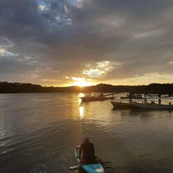 Wir haben dann noch paar Freunde abgeholt und uns mit dem Rest im Supermarkt getroffen, wo dann wieder... Alkohol gekauft wurde. Von dort aus gings Richtung Meer. An einem Steg war die Autofahrt dann zu Ende und die ganze Gruppe wurde mit einem Privatboot zu einem Sandstrand gebracht. Mitten zwischen kleinen Inselgruppen an der Pazifikküste. Knapp eine Stunde mim Boot aber der Strand hier ist schon sehr geil!