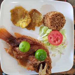 P.S. Foto vom frittieren Fisch: sehr typisches Gericht in Kolumbien: Kokusreis mit Fisch und frittieren Kochbananen.Les mer