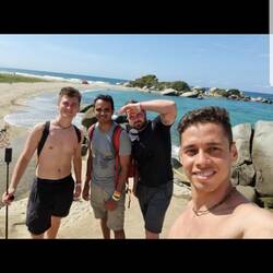 Im Pool hatten wir vier echte Männer^^ dann nen kaltes Bier haha. Ram hat ein wenig Schwimmunterricht bekommen, weil er nämlich nicht schwimmen kann. Also gar nicht. Voll krass weil ich kenn niemanden, der sich im Wasser nicht fortbewegen kann. Gegen 10 Uhr sind wir dann mit nem Dosenbier in der Hand in die Stadt gezogen und ich hab Santa Marta wirklich unterschätzt. Es gibt viele Bars und Restaurants und auch Clubs im Zentrum. Viele Menschen sind unterwegs! Und zack auf einmal treffen wir auf die deutsche Gruppe aus Cartagena. Und wer sitz mit ihnen am Tisch? Paulina vom Lost City Track. Ein sehr witziger Zufall, dass sie die Gruppe in dem Hostel in Santa Marta jetzt getroffen hat. Wir waren dann ne Gruppe von 10-12 Leuten und sind dann noch gemeinsam ein wenig durch die Stadt gezogen. die Jungs waren ziemlich weggeballert aber witzig und wir sind dann alle in ne Bar, wo Sean, Paulina und ich uns nen Craftbier gegönnt haben und die anderen auf der Tanzfläche verschwunden sind.