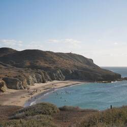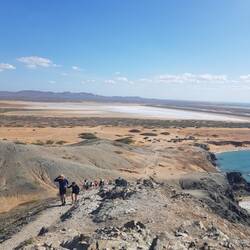 Die Landschaft ist schon was ganz Einzigartiges hier. Die staubtrockene Wüste mit ihren verdorrenen Büschen und Ästen und direkt daran grenzt dieses türkise Meerwasser.. Die Luft ist trocken und die Sonne brutzelt dich, sobald du einen Fuß aus dem Schatten setzt.