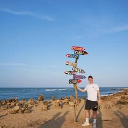 Als wir wieder am Strand waren, mussten wir den ganzen Weg zum Eingang zurück gehen und wir hatten ein leichtes Zeitproblem und mussten ein bisschen husteln. Wir haben alle auf eine Zeit gewettet und da Renato und ich eine relativ sportliche Zeit eingeloggt haben, sind wir recht zügig gegangen. Auf dem Weg wieder interessante Gespräche und so weiter und zum Schluss hat Ram mit seiner Schätzung gewonnen gehabt. 1 h 15 min.. obwohl wir echt schnell waren.