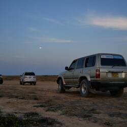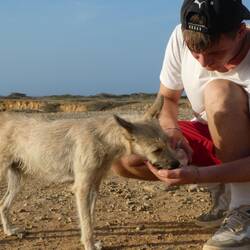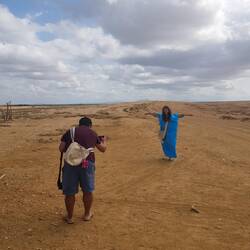 Zu Mittag gabs dann für mich Reis mit Camarones und es war super lecker. Nach insgesamt 2 Stunden Mittagspause gings wieder in dem 4x4 Jeep und unser nächstes Ziel waren die Sanddünen, die direkt ans kristallblaue Meer angrenzen. Jetzt haben wir die Dornsavanne hinter uns gelassen und waren jetzt richtig in einer Wüstenlandschaft. Rechts und links nur die Weite und vertrockneter Boden. Am Horizont ein paar Wüstenberge und vllt noch die Spuren von den vorherigen Jeeps.