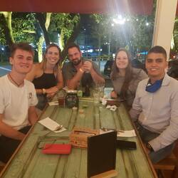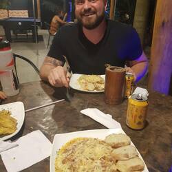 Am Abend war der Plan, dass wir gemeinsam mit der Männergruppe essen gehen. Ram und ich sind vorgegangen und wollten ein Restaurant raussuchen, aber wir sind kläglich an der großen Auswahl gescheitert. Die anderen kamen aus dem Gym dann nach und gemeinsam haben wir dann ein coolen Platz gefunden, wo ich Pasta mit Camarones (Schrimps) und die anderen was typisch Kolumbianisches hatten. Stimmung war gut. Hier in Cartagena hab ich so viel Geld gelassen, dass es eh schon egal ist😅
