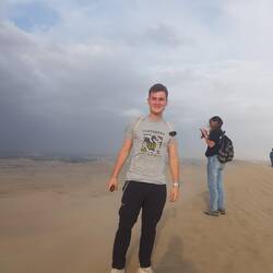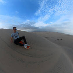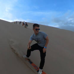 Wir haben uns dann in unserer Gruppe ein Sandboard für eine Stunde gemietet und hatten einen Local dabei, der uns dann zum Spot begleitet hat. Man kann nämlich die Dünen bis ins Wasser runterrutschen und es macht Laune! Das Board wird jedes Mal wieder eingewachst mit einer Kerze und dann setzt oder legt man sich drauf und ab geht die Post. Richtig Sandboarden ging mit unseren Board leider nicht:/ Aber der Spaß war trotzdem gegeben.