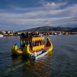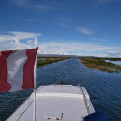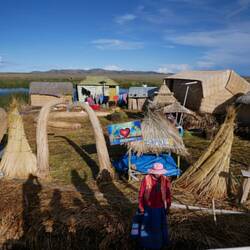 Mit dem Schiff sind wie dann zu dem Volk auf dem See gebracht worden und der Weg dahin war dann ganz okay. Wir sind durch eine Wasserstraße von eine Art Schilf gefahren. Die Uros haben sich mit Torfblöcken und aufeinander gelegten Seggen (Art Schilf) diese Inseln errichtet. Dort leben sie in Strohäusern und wir haben eine zwei Minuten Erklärung über das Leben und die 80 umliegenden Inseln bekommen.. Und das wars..! Sofort danach wurden wir zu den Ständen gebracht wo sie uns penetrant Sachen verkaufen wollten. Ich war ja nur mit Locals dort und hab mich dann einfach irgendwann in die Mitte von diesem "Dorf" gestellt. Das Dorf besteht btw einfach aus einer Großfamilie, und hab den Kindern beim Spielen zugeschaut, was 1000 mal interessanter war als der Rest..