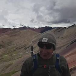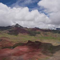 Der Ausblick war währenddessen übrigens kaum zu übertreffen. Wie hatten perfekte Wetterconditions und wir konnten sogar den mit schneebedeckten 6.300er Berg sehen. Die Kulisse mit den Rainbow Mountains dazu ist der Wahnsinn! Wir hatten unglaubliches Glück! Vor 3 Jahren habe ich das erste mal ein Bild von den Montanas de 7 Colores auf Instagram gesehen und zu mir immer gesagt: wenn ich mal reise, möchte ich da hin! Und da stand ich jetzt!