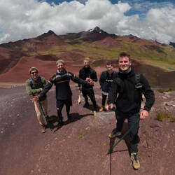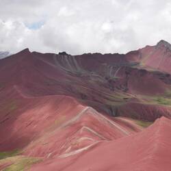 Wir haben dann paar Bilder zusammen gemacht und stimmt, ich hab noch nen Beweisstempel in meinen Reisepass bekommen und danach sind wir fünf, noch zum Red Valley. Der Guide hat uns den Weg und den kleinen Pfad gezeigt. Ihr könnt ihn auch erkennen, auf dem Bild auf dem man den Rainbowmountain sieht und dann rechts die rote Bergkette und unterhalb kann man einen kleinen Weg erkennen. Wir sind trotz der Höhe schnell genug, die kleine extra Wanderung dran zu hängen. Nichts desto trotz sind wir auf 5.036 Metern gerade. Bis zu dem Zeitpunkt meiner neuer Rekord, welcher aber kurz danach nochmal gebrochen wurde und jetzt bei 5.069 M. ü. NN. liegt!
