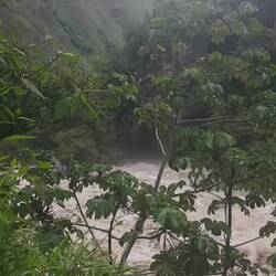 Mit einem kurzen Bierstop haben wir den Regen ein wenig abgewartet und so sind wir dann nach gut 3 Stunden in Aguas Calientes angekommen. Der reisende Fluss, der uns schon die ganze Zeit neben den Gleisen begleitet hat, hat wegen dem Regen unglaublich viel Wasser und Power! Die braunen Wassermassen schießen nur so an uns vorbei und an vielen großen Felsen, bauschen sich Wasserfontänen auf. Noch nie einen so starken Fluss gesehen. Vor einer Woche wurden Teile von Aguas Calientes überflutet und wegen Starkregen ist die Bahn sogar eine Woche ausgefallen. Heute regnets ja auch in Strömen und wir hoffen, dass wir morgen auf dem Machu Picchu gutes Wetter haben!
