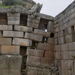 Die Anlage besteht aus zwei verschiedenen Bereichen. Einmal der Häuserblock, wo die Upperclass lebte, wie Priester, Ingenieure oder Architekten. Er war mit Steinmauern und einem großen Holztor geschützt. Und einmal der Rest der Anlage, wo die Arbeiter und Farmer lebten. Dieser Block war ein wenig unterhalb gelegen. Übrigens wurden die milimetergenauen Mauersteine der Inkas, welche man in Cousco bei den Palästen sieht, nicht in Machu Pichu gebaut. Es ist zu aufwändig und der Inkakönig hat diese exakte Steinmetzearbeit nur in der Hauptstaft gebraucht, womit er seine Macht und sein Wissen präsentieren konnte. Nur der Sonnentempel und ein paar Altare haben die mörtelfreien Mauersteine hier in Machu Picchu.