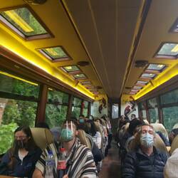 Und so bin ich noch in das Vergnügen der Inkarail gekommen. Boarding war um 14 Uhr in Aguas Calientes und so hatte ich genug Zeit, ganz entspannt wieder vom Machu Pichu runter zu laufen. Wieder 12 € gespart^^ In nem Restaurant auf der Dachterrasse hab ich dann was Kleines zu Mittag gehabt und hab Paula dann noch ein wenig mit Videocall die Stadt und den tobenden Fluss gezeigt. Die Stadt Aguas Calientes existiert erst seit 20 Jahren, seitdem dieser Massentourismus nach Machu Picchu angefangen hat.