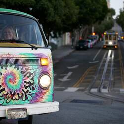 Cool war zu verstehen, wie die berühmten Cable Cars funktionieren. Seit 1873 gibt es sie in San Francisco und sie wurden tatsächlich nur für San Francisco erfunden, da es so viele steile Straßen hier gibt. Es sind Unfälle mit pferdegezogenen Kutschen passiert und so musste eine Lösung her. Ein Kabelnetz verläuft tatsächlich in einer Schleife unter der Straßen, welches die ganze Zeit durchgeschleift wird. Das Cablecar klingt sich mit zwei aufeinander gepressten Holzblöcken ein und wird gezogen und kann an Steigungen, an denen es halten muss, einfach die Bremse ziehen und die Blöcke lösen und sich bei der Weiterfahrt wieder einhaken. Alle drei Tage müssen die Blöcke ausgetauscht werden und die Kabel nach 6 Wochen.
