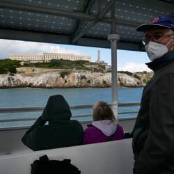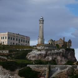 Wir umrunden die Insel und man erkennt jetzt erst die Dimensionen von "The Rock". Steile Felswände gehen vom Wasser aus nach oben und es gibt nur eine einzige Anlegestelle auf der Insel. Oben thront der alte Gefängnisblock und auf dem Rest der Insel sind noch ein Leuchturm, ein paar Wachtürme und einige weitere Gebäude wie die Häuserblöcke der Wärter und deren Familien oder die Arbeitsstätten der Gefangen oder die generelle Infrastruktur, die für die Betreibung des ersten Maximum-Security-Prison von Amerika benötigt wurde.