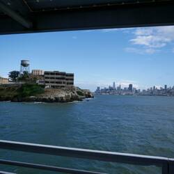 Kurz darauf waren wir auf der Fähre. Wir hatten gute Plätze an Deck und kamen langsam in das Feeling rein, welches Alcatraz schon von weitem ausstrahlt. Schwer zu beschreiben.. und wir sind einfach froh, kein Schwerverbrecher zwischen 1935 und 1963 gewesen zu sein, der gerade seine vermutlich lebenslange Haftstrafe auf Alcatraz antreten muss und jetzt im Gefangenentransport rüber auf die Insel geschifft wird.