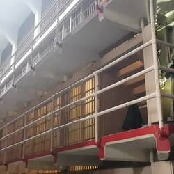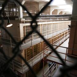 Weiter in der Tour haben wir Zutritt zu den Aufenthaltsbereichen der Wärter bekommen. Unsere Gruppe wurde durch die Eisenkäfige überhalb der Zellenblocks geschleust, wo die Wärter mit scharfen Waffen patroulliert haben. Eine scharfe Waffe war übrigens niemals im direkten Kontakt zu einem Gefangenen. Dies wurde immer durch den Stahlnetze getrennt, um eine Überwältigung einer Wache und dem Erlangen einer Schießwaffe zu verhindern. Wir waren wirklich hinter den Kulissen unterwegs.