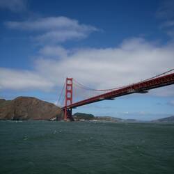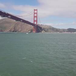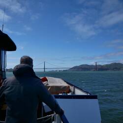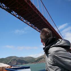 Nach dem U-Boot haben wir uns zu Mittag ein Cheesesteak geholt. Das ist eine typisch ungesunde Spezialität aus den USA. Lecker und fettig und so haben wir uns eins geteilt. Danach sind wir wieder zum Pier und haben eine Bootstour auf die San Francisco Bay gemacht. Wir sind mal wieder an Alcatraz vorbei getuckert und kennen die Insel inzwischen auswendig, da wir uns gestern Abend noch ne Doku über Alcatraz angeschaut haben. Das eigentlich Ziel der Bootstour ist aber das Unterfahren der Golden Gate Bridge.
