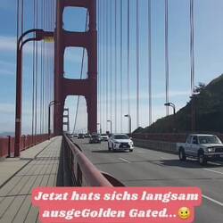 Und jetzt muss man wirklich sagen: Es hat sich langsam ausgeGolden Gated! Wir haben die Brücke jetzt mit dem Rad ÜBERfahren, mit dem Boot UNTERfahren, mit der Bustour BEfahren und sind sie final heute noch BEgangen...