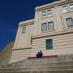 Die Tour hat dann in der Zitadelle geendet, wo wir mit der Nachttour schon waren. Tolle Führung. Uns haben die beiden Mädels dann noch privat den Leichenraum gezeigt und wurden noch zum Gefängnishof geführt. Hier haben wir dann auf der obersten Stufe Brotzeit gemacht, während wir den gesamten Hof überblickt haben. Die Sicht ist fenomenal auf die Golden Gate Bridge. Für einen Gefangenen, der hier nie mehr in seinem Leben rauskommen wird aber hart. Wenn der Wind richtig stand hat man an manchen Tagen das Lachen der Leute vom Ufer bis auf die Insel hören können und tatsächlich, eines der schlimmsten Foltermethoden war der Fakt, dass das blühende Leben direkt gegenüber von ihnen in San Francisco statt fand.