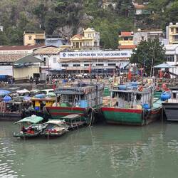 Am zweiten Tag heute in der Halong Bay lagen wir nur bis 13 Uhr im Hafen und sind wir nochmal in dieLæs mere