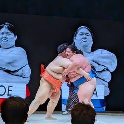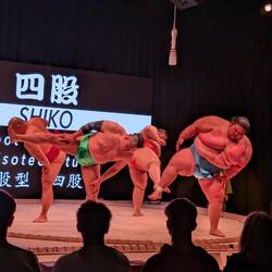 Un spectacle avec d'anciens sumos.