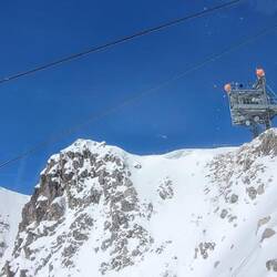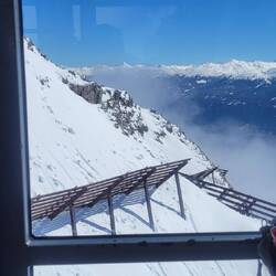 The last station is Hafalekar, and it sits at 7,400 ft! It was amazing to actually be looking down at the clouds. It was still very icy, and we decided not to walk to the very highest pinnacle. Actually, we negotiated this point because one of us really wanted to try it, but one of us thought it was too risky. I will let you guess which thought is Brian's and which one is mine.Læs mere