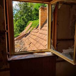 a beautiful bridge modelled after the eiffel tower deep in the woods and the teail to it leads along the now abandoned traintracks.