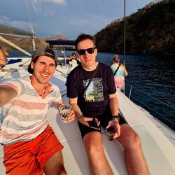... auf geht's zu einer coolen Catamarantour mit open Bar🤩🤣🍹... und unsere kanadischen und amerikanischen Freunde sind natürlich sehr gut drauf 😅🎶