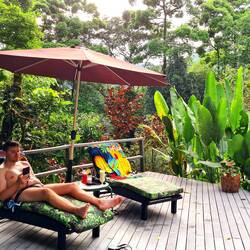 ... nach einer langen und anstrengenden Autofahrt erholen wir uns am Pool und lauschen den Geräuschen des Dschungels🤗
