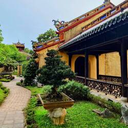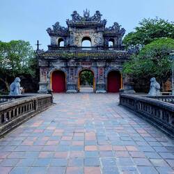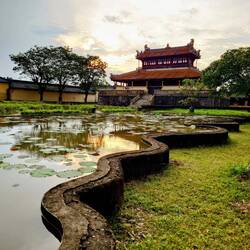 Huế // Auch die alte Kaiserstadt hat ihre sehenswerten Ecken. Wir schauen uns heute die Zitadelle an, die den alten Kaiserpalast beherbergt. Es handelt sich um ein vollständig quadratisches Areal, das der Verbotenen Stadt in Beijing nachempfunden wurde. Es ist nur nicht so groß wie das Original. Wir hatten gestern ein Kombiticket gekauft, das uns heute noch zum Besuch der Zitadelle berechtigt und starten am Nachmittag.