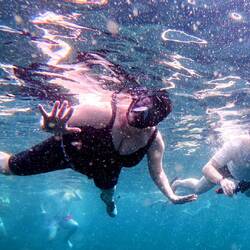 Die Tour dauert den ganzen Tag und wir laufen fünf verschiedene Spots rund um die Insel an. Am besten gefällt uns die Mango Bay. Hellblaues Wasser, hervorragende Sicht, schöne Farben. An den restlichen Spots ist die Sicht durch Plankton und andere Schwebstoffe recht eingeschränkt. Es ist trotzdem ein schöner Ausflug.