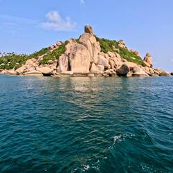 Heute gehen wir es etwas professioneller an. Wir haben gestern auf den letzten Pfiff noch zwei Plätze auf einem Boot für ca. 20 Leute ergattert. Es gibt diese Boote auch für über 100 Menschen. Mit denen möchte man aber nicht zeitgleich um die selbe Schildkröte herumpaddeln. Unterwasserflora und -fauna können einem hier ohnehin leidtun. Um Koh Tao herum grassiert die Korallenbleiche. Wir sehen zwar an manchen Spots schöne Fische und auch noch ein paar intakte Korallen, anderenorts sieht der Meeresgrund allerdings aus wie eine Mondlandschaft. Das ist wirklich schlimm.