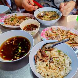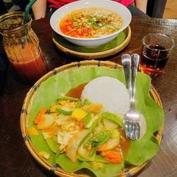 Wir hatten uns ja schon vor zwei Tagen im Restaurant Tamarind zum Kochkurs angemeldet. Leider haben wir keine Antwort bekommen und wir überlegen, ob wir dort selber mal vorbeischauen und nachfragen, ob es denn wohl noch klappt. Vorher planen wir aber noch ein Probeessen. Wir bestellen das Nationalgericht Laap einmal mit Büffel und einmal mit Ente und siehe da: Es schmeckt uns überhaupt nicht! Meins ist zu scharf und mit Koriander und Hasis ist gar nicht scharf und auch mit Koriander... Außerdem ist das Essen nicht ganz preiswert. Wir zahlen still und heimlich und haben seitdem auch keine Rückmeldung bekommen. Puhhhh!