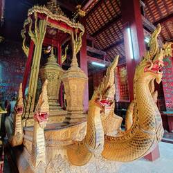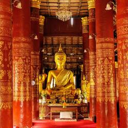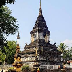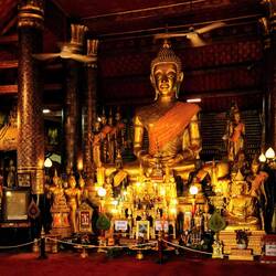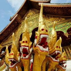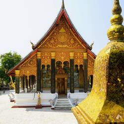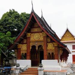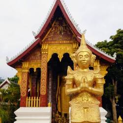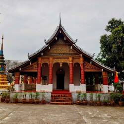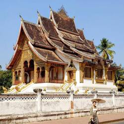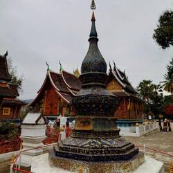 Da der Himmel bedeckt und es nicht ganz so warm ist, fällt unser Morgenausflug heute etwas länger aus. Wir wollen zum angeblich schönsten Tempel von ganz Laos, dem Wat Xieng Thong. Unterwegs fallen wir praktisch alle paar Meter von einem Wat in den nächsten. Es ist schon irre, wie viele Tempel es in der ehemaligen Königsstadt gibt. Bis 1975 regierte hier der König, danach wurde er abgeschafft. Seitdem ist Laos ein sozialistisches Land.