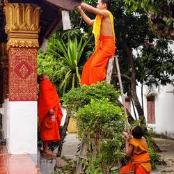 Unser letzter Tag in Luang Prabang. Hätten wir zu den berühmten Wasserfällen fahren sollen? Man wird ja überall in der Stadt von Tuk-Tuk-Fahrern angesprochen, ob man nicht dorthin möchte. Ach was! Der wird ohnehin nur überlaufen sein.