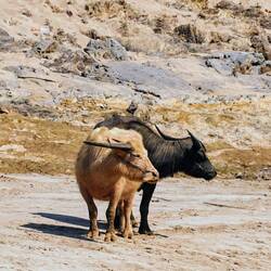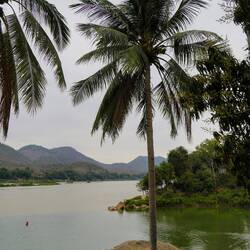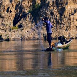 Wer denkt, dass es sich um eine gemütliche Schipperei handelt, der irrt. Der Mekong hat etliche knifflige Passagen. Unser Bootsmann hat ordentlich zu tun, Felsen im Wasser zu umschippern und Stromschnellen auszuweichen. Am Ufer sieht man viele Wasserbüffelherden. Die Landschaft ist echt toll. Es war eine gute Idee, mit dem Boot zu fahren.