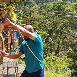 The man had said once you see the waterfall just go down the river about 100m, is the zipline on the left. Sounded simple, but the path was a slippery mudbath and was a bit of a mission! Have heard aOkumaya devam et