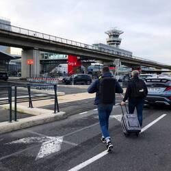 Nous sommes bien arrivés ! Nous laissons la voiture à un gentil monsieur et on décolle !