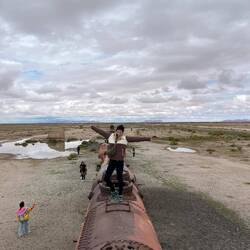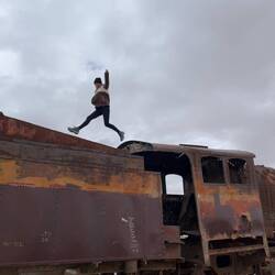 But first, a stop at the train cemetery. A bunch of old, rusty trains in the middle of the desert—Bolivia once had grand marketing plans for it, but since they never actually charged an entrance fee, it just kind of exists now. We climbed around, took some fun pictures, and then continued on to the main event…