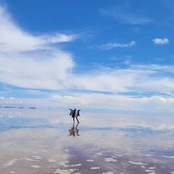 Dann endlich: Die Salzwüste!!! Ich hab mich so sehr darauf gefreut, und es war einfach noch besser als erwartet. Der berühmte Spiegeleffekt in der Regenzeit ist einfach magisch – ich hätte ewig zuschauen können.