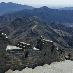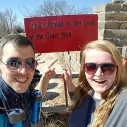 Today has probably been our greatest day since we arrive in China. We headed with a group to the Great Wall of China. Luckily we could avoid the 2500 step climb to the wall and take a cable car up instead which not only maximised our time on the wall but also saved our legs for the wall climbing instead! Walking the wall was spectacular. The views were just breathtaking and every time you looked back it looked even more incredible. Choosing just 6 photos was hard! We were aiming to make it from turret number 14 we came in on to 20 where the wall changes from the restored version to the original ruined wall that hadn't been touched since it was built. From there we hoped to reach 23 which is the highest turret on the old wall and where it becomes impossible to go any further. We were doing well the ups and downs were tough but then we saw it... the biggest uphill staircase climb ahead. To say it was hard would be an understatement but 475 steps and some climbing with our hands later we made it to the top of the turret. Our journey wasn't over yet! We still had more climbing in store to get to the highest tower of the wall or the peak of the tourist section. This is where we discovered the old wall. With trees growing on the path, rubble everywhere and little of the sides of the walls remaining this is what we came to see. We negotiated plants and boulders to climb even further along. We were unsure on our timings but decided to push to one more turret and we were so glad we did. The view of the mountains and beijing was worth every step. We made it! We were 2 turrets off our target but time wasn't on our side; we wanted to be back to make the most of our free lunch that was offered with the group deal. We did hear the last 200 metres to the top turret is pretty much a vertical climb using your hands. It took 2 hours to get up and only 30 minutes to get back. Our knees were tumbling after that 475 staircase down at one point. We rounded off the day with a visit back to the lake we had food at previously and it was nice to just walk on flat ground for a while!Meer informatie