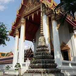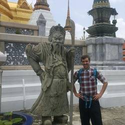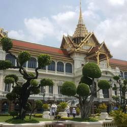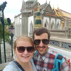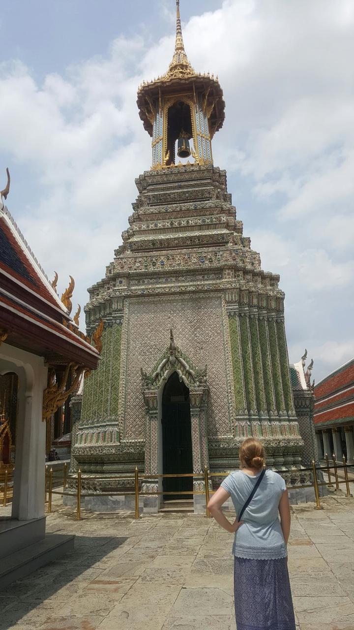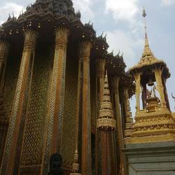 We couldn't visit the capital city of Thailand without a visit to the royal palace. Despite the bad predictions on the weather forecast the sun was shining and we were ready for a full day of being typical tourists. We took a taxi to the palace and I had prepared for this and was wearing a t shirt that covered the shoulders and leggings to cover the legs, I've got the hang of it after visiting so many places with dress codes. However we were surprised to find that leggings are not allowed in the palace! I was turned away and we had to visit a store across the road to buy a wrap around skirt for me to wear, luckily it was cheap. That shop must make a killing as so many people turned up in shorts and vest tops. The palace was incredibly grand with all the buildings covered in mosaics of bright colours and even gold. It was very heavily decorative and we enjoyed exploring all the buildings that made up the main section. In the heart of the area is a temple where an emerald Buddha is housed inside. From past experience of emerald Buddhas we knew not to expect anything bigger than a foot or two tall and we were right! At the top of a huge decorative tower sat the small emerald Buddha. Our tickets allowed us entrance to also a coin exhibition at the palace. This has currency dating back hundreds of years on display and it was really interesting to see how it had developed and changed. We also had entry to a textiles exhibition that was organised by the Queen to showcase her own dress but the craftsmanship of others around Thailand in relation to Textiles. Something right up my street and it was such a shame we couldn't take photos. Our next stop to visit was a temple called Wat Pho, about a 10 minute walk from the palace. We did stop off for a juice and ice cream on the way though as it was so unbelievable hot without the rain. One of the buildings inside houses the largest reclining Buddha who completely stretches the whole length of the building. He was huge! So huge that you just could not get a good photo of him at all. You loop round and go back to the start of the building behind the Buddha. Here they sold coins for a donation and as you walk you drop them into cauldron like pots along the way. The sound created from many people doing this echos throughout the room creating a beautiful noise. We have no idea what doing it means but it was pretty cool. We explored the many tucked away places of this site before calling it a day and heading back. As it's our last day in Bangkok we headed back to the restaurant where I had my amazing cashew nut dish. It was still amazing but not quite as good as the other day. I found out it's a signature thai dish with plenty of recipes online so that's good to know! A pretty good sight seeing day really.Read more