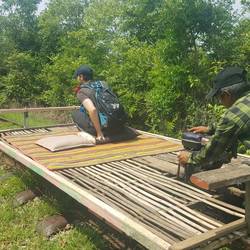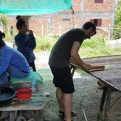 We have only booked two nights in Battambang so today was our real full day of doing things in this city and province. We arranged with the tuktuk driver who brought us to the hotel yesterday to take us on a day tour around many different places we wanted to see and then with a few extra stops added in. It was so worth it! We were able to see so many places and experience many things we wouldn't of been able to on our own. We started our day with a ride on the bamboo train. It's a large light platform made from bamboo that sits on two wheel arches and has a motor attached. It's used by the locals to transport goods between two villages roughly 4km apart. It was so much fun! Like being on a vintage roller coaster. The cart went surprisingly fast down the tree lined wonky track and we had to dodge many crickets, flies and other insects hitting into us. It's a single track so when a cart is coming the other way the solution is for one cart to get off and dismantle the carriage off the track while the other passes and then reassemble. It was a very memorable ride. After the train we went to another prison and killing field used during 1976. Before we entered we visited a bamboo place where they make what they call 'sticky rice' inside of bamboo. They cut up the bamboo into segments and fill it with the rice mixture and pack the ends with banana leaves. It's then cooked and the outside of the bamboo removed so when you eat it you can peel it like a banana to get to the rice inside. It was very tasty and something we wouldn't of seen or tried if we'd been on our own. The killing field site was very unnerving. The building used as a prison is completely boarded up now and laid to rest as it is. They've built a large monument to acknowledge what happened here and to honour those who died on this site. The road to our next stop lead us to a small bridge down a steep bank so Nick and I had to get off and help support the tuktuk carriage from just rolling down the hill. We visited a fishing village where we saw, and smelt, the locals cutting (hacking) up the fish, they even make fish cheese here! We also went to see how rice paper is made and tried some of the spring rolls they make from the paper. Our last stop of the morning was an amazing ruined temple. We climbed in and out of the crumbling archways that are now only reinforced with wooden planks. They've built a more modern grand temple on this site now as well. We also went inside a very weathered looking Buddha to see a small shrine inside. We had a break back at the hotel for lunch for a couple of hours before heading to the bat caves. We opted to pay for the jeep to take us up the steep 1000 step hill where we saw a golden temple and progoda at the top surrounded by monkeys. The views from the top were also spectacular. We also visited the 'killing cave', a very chilling site where victims were hit or pushed down into a skylight of the cave below, a drop of at least 6 storeys high. It was very eerie being inside the cave where they have now put in place a golden Buddha and a glass cabinet containing the bones found there. After taking our time to take in what we were seeing we headed back down the hill to watch the bats fly out the cave and what an amazing sight that was. They poured out in flowing waves in a stream that even after half an hour was not dwindling in numbers. After enjoying the spectacle we headed back for a much need swim and to deal with our bed bug friends in our bed! A very packed but brilliant day indeed.Читать далее